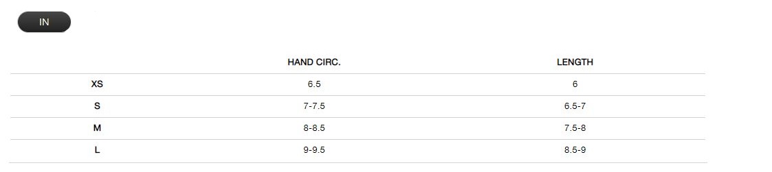 Click on the image to see the full sized image of the TNF - Mens Gloves & Mittens size guide