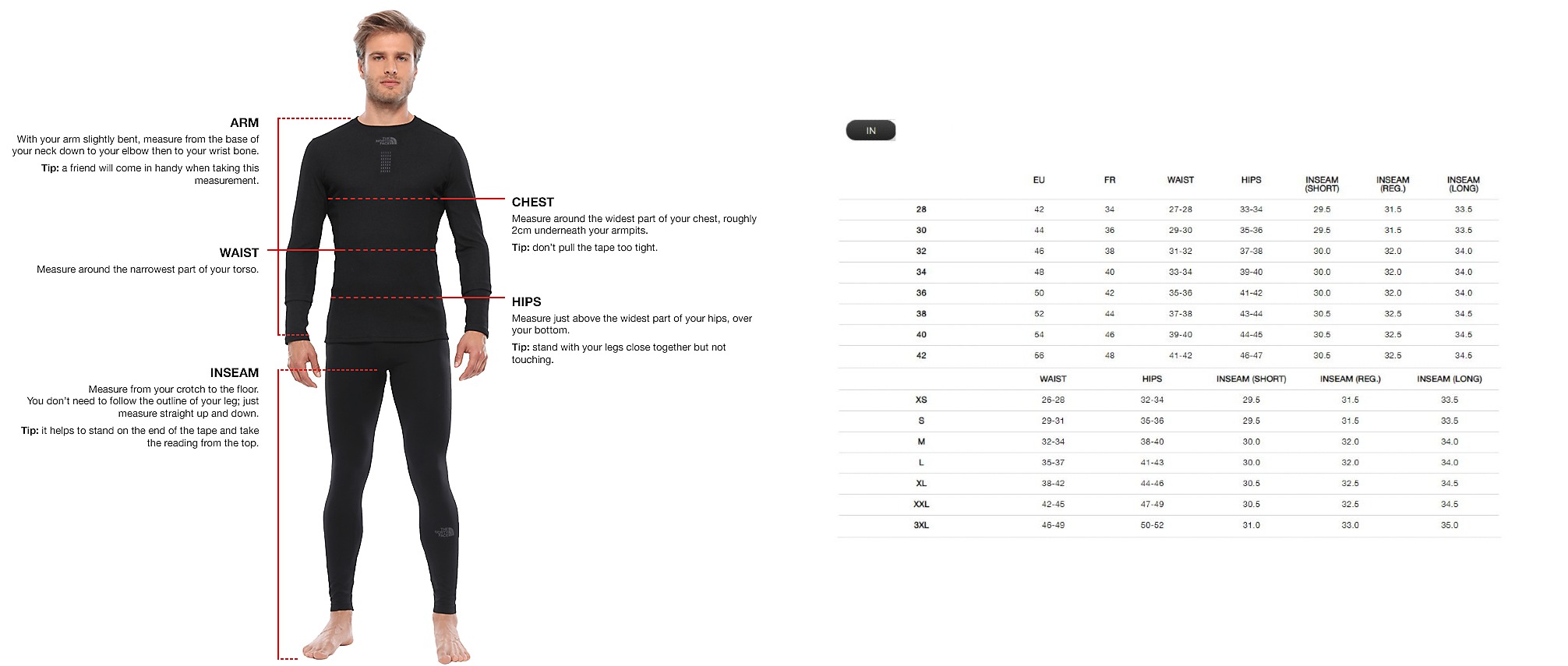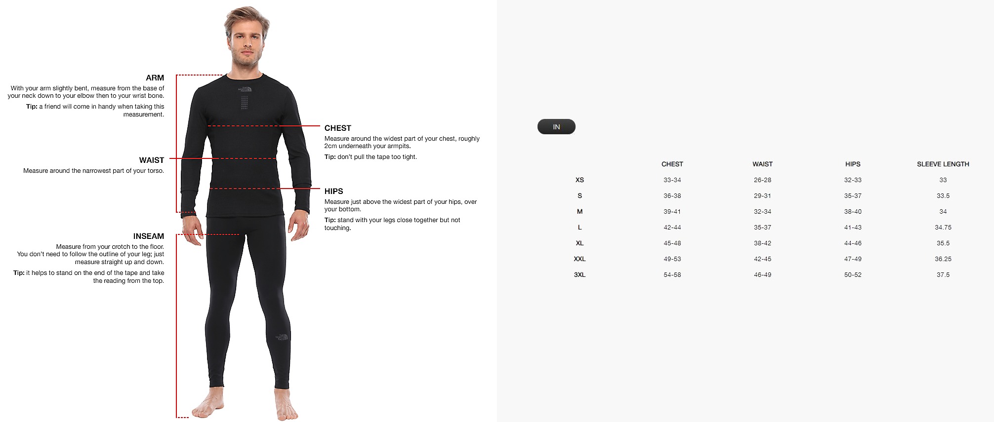 Click on the image to see the full sized image of the TNF - Mens Jackets & Tops size guide