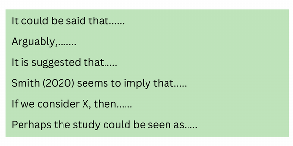 You get the idea. So whenever you provide an interpretation of any kind in your writing, unless you can say with absolute certainty that you're discussing a fact, then always present your opinion as just that - an opinion (albeit an informed, academic opinion). And one clear way to do this and present yourself as a critical writer is to hedge your interpretations.